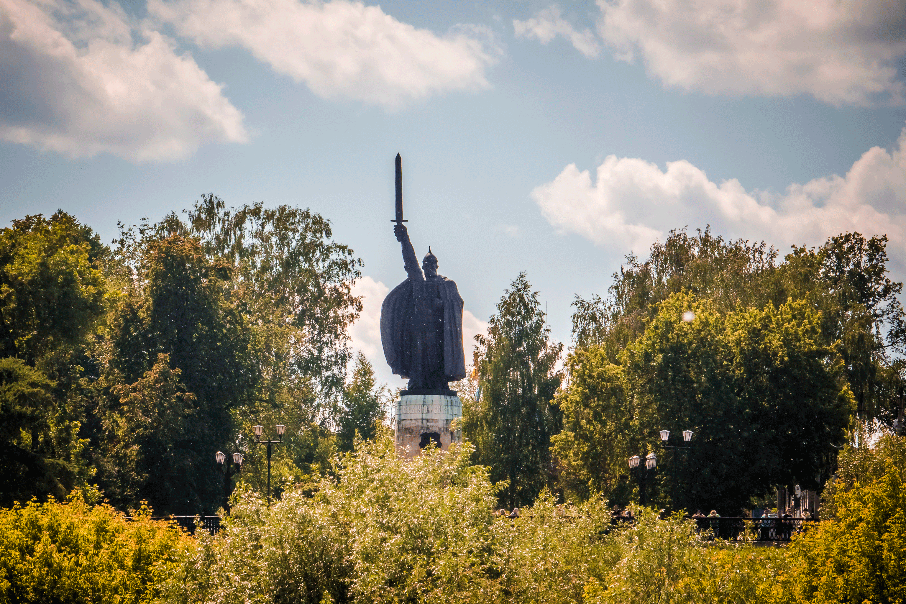 - Памятник Илье Муромцу Величественный монумент, высотой в 21 метр, установлен на смотровой площадке Окского парка относительно недавно - лишь в 1999 году и сразу же стал визитной карточкой Мурома. Былинный герой представлен в образе героя - монаха: из под защитной кольчуги виднеется монашеское одеяние, правая рука победоносно поднимает знаменитый Меч-кладенец над головой, а левая прижимает православный крест к груди. Взгляд богатыря устремлен через реку, где проходит граница города, словно защищая Муром от всех внешних угроз.