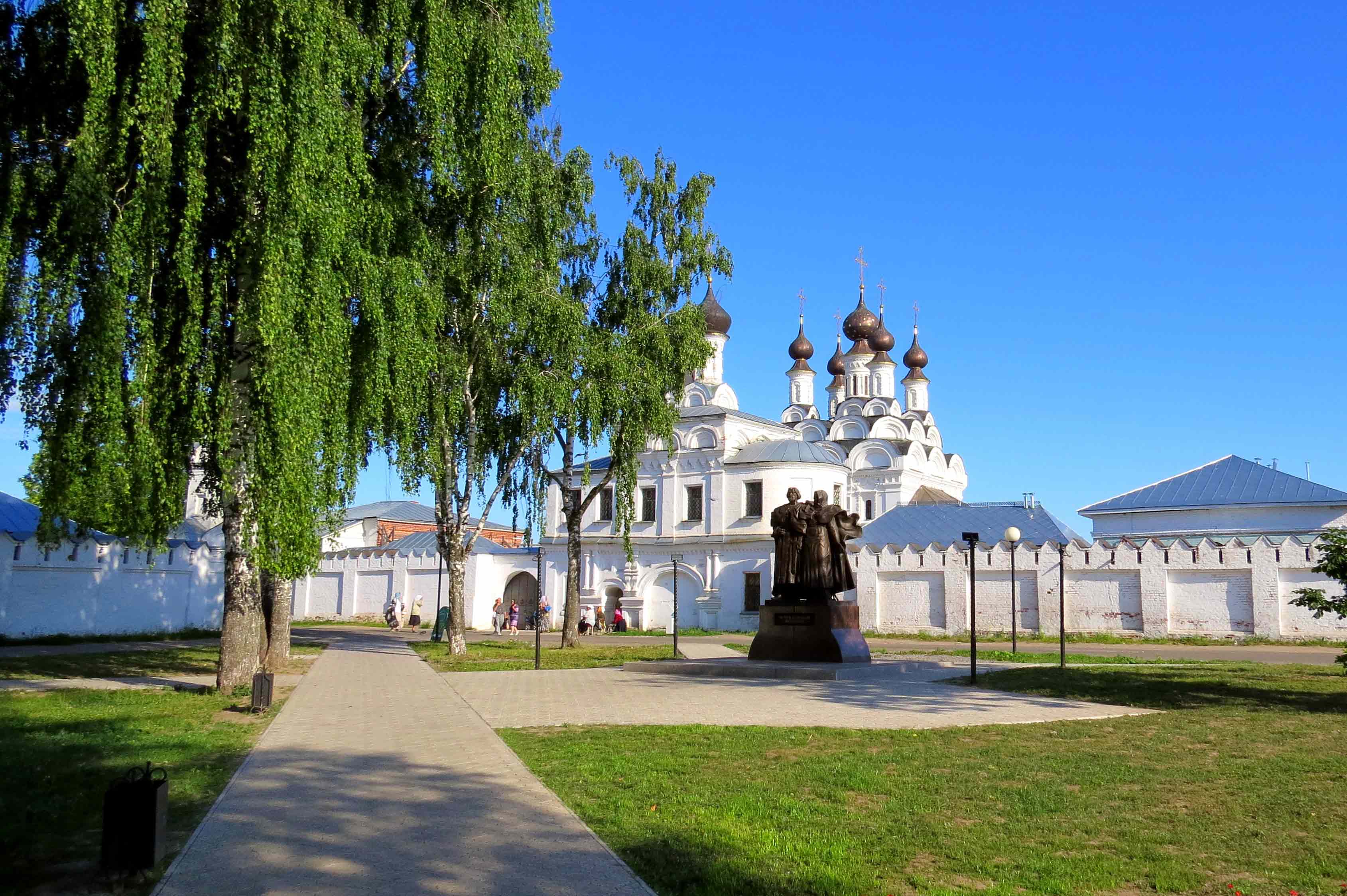- Свято-Троицкий женский монастырь. Свято-Троицкий женский монастырь был основан в 1643 году на средства зажиточного муромского купца Тарасия Борисовича Цветнова. На территории монастыря расположены три действующих храма, главный из которых Свято-Троицкий собор.Именно тут хранятся главные святыни монастыря: гробница с мощами святых Петра и Февронии и Виленский крест - мощевик.